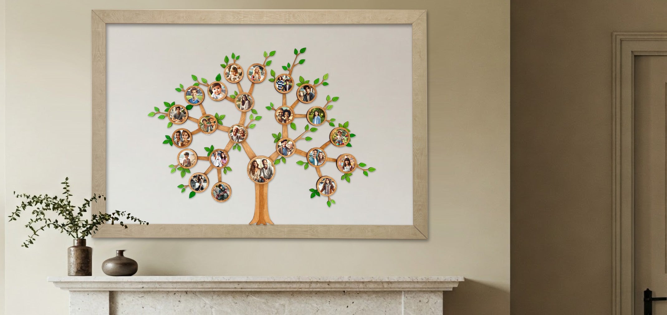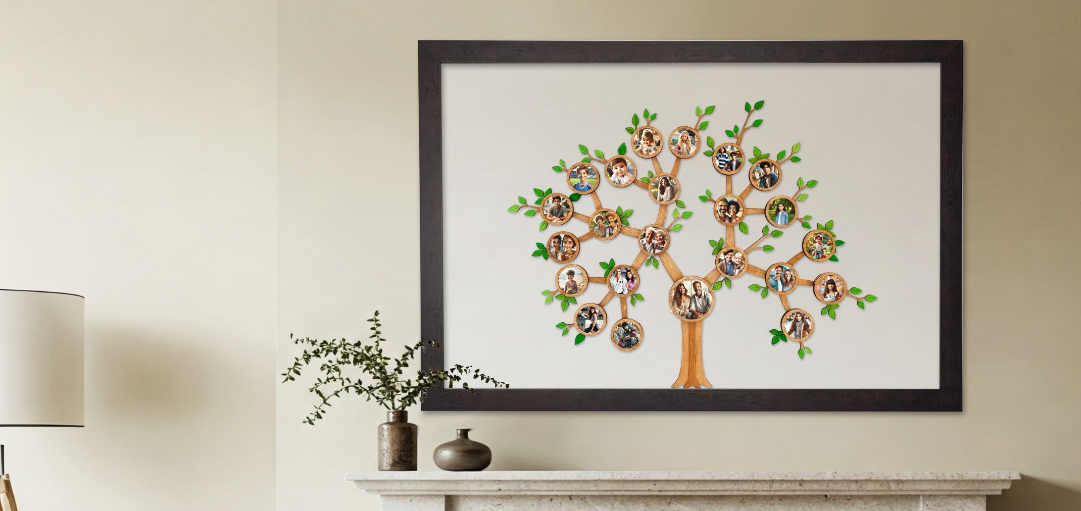 Your family's story—beautifully displayed. A customizable wall-mounted family tree that grows as your family does!